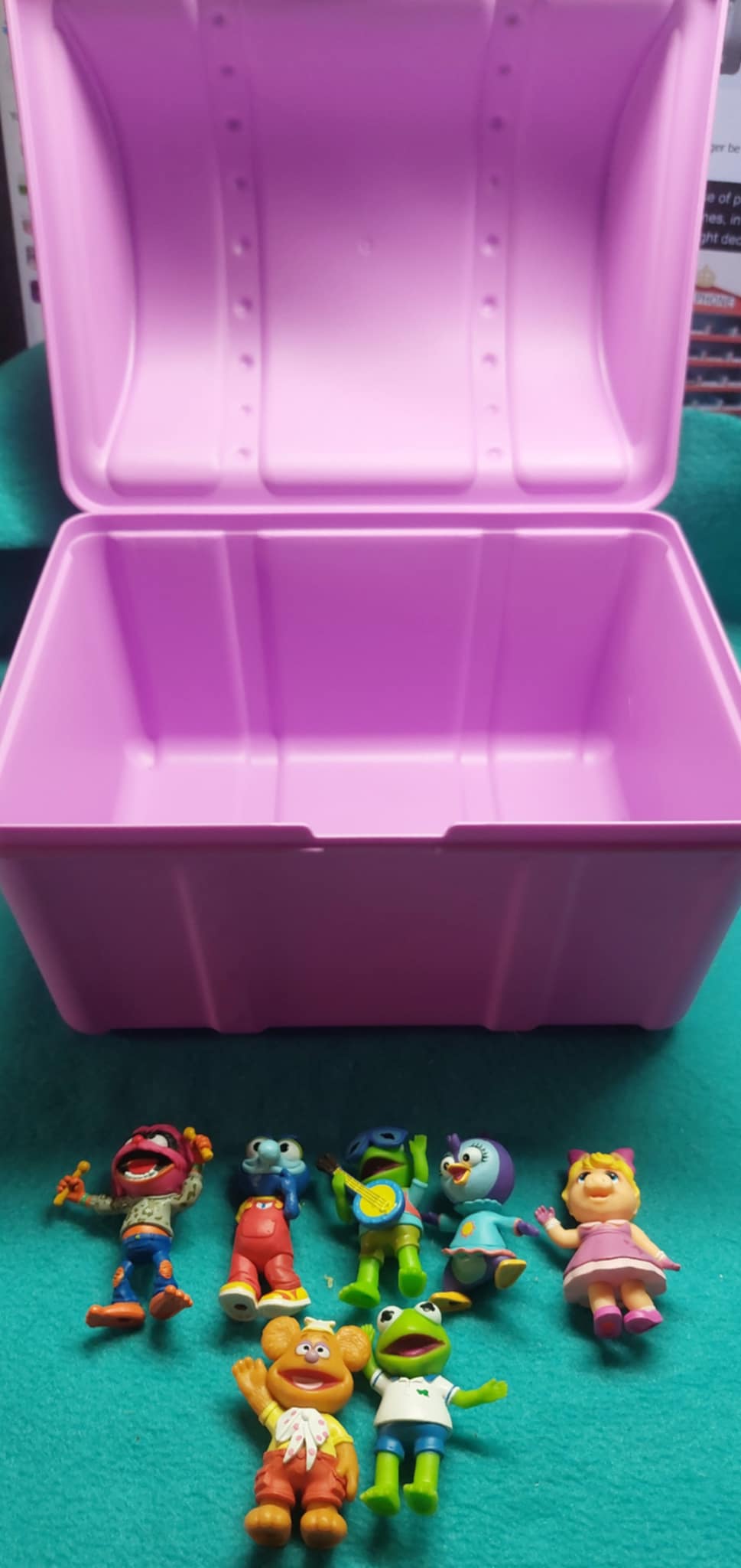 This is a large floor toy box for your gliders. The lid will be secured open, with chains to attcach to the cage sie wall. They will come with 10 poms and filller toys, pluys straws, charms and cups to play.